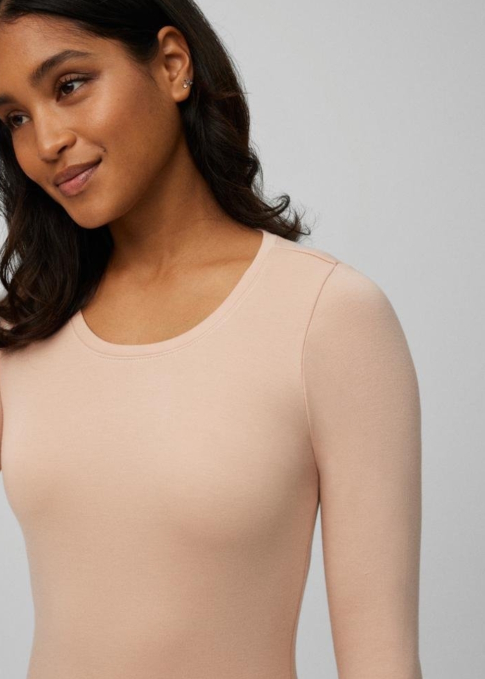 • T-shirt feminina manga comprida cor de pele com gola redonda