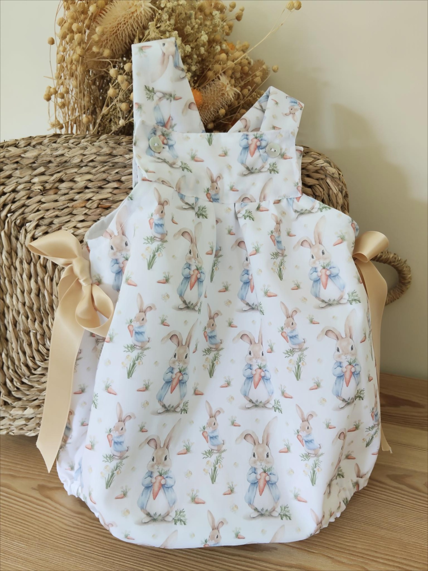 • Macacão de bebé com padrão de coelhos a segurar cenouras