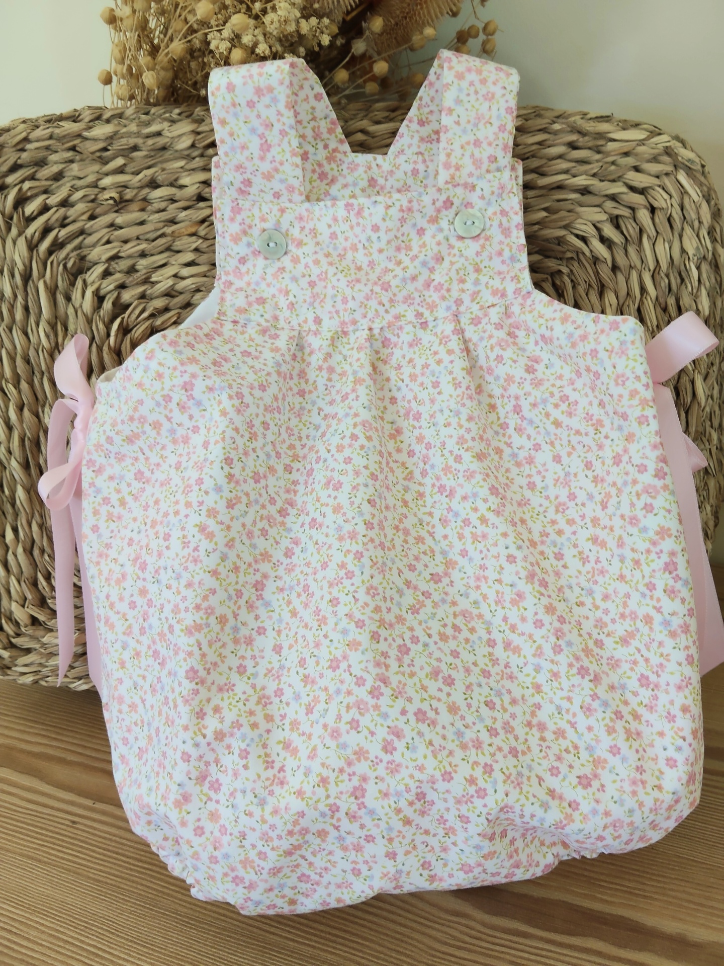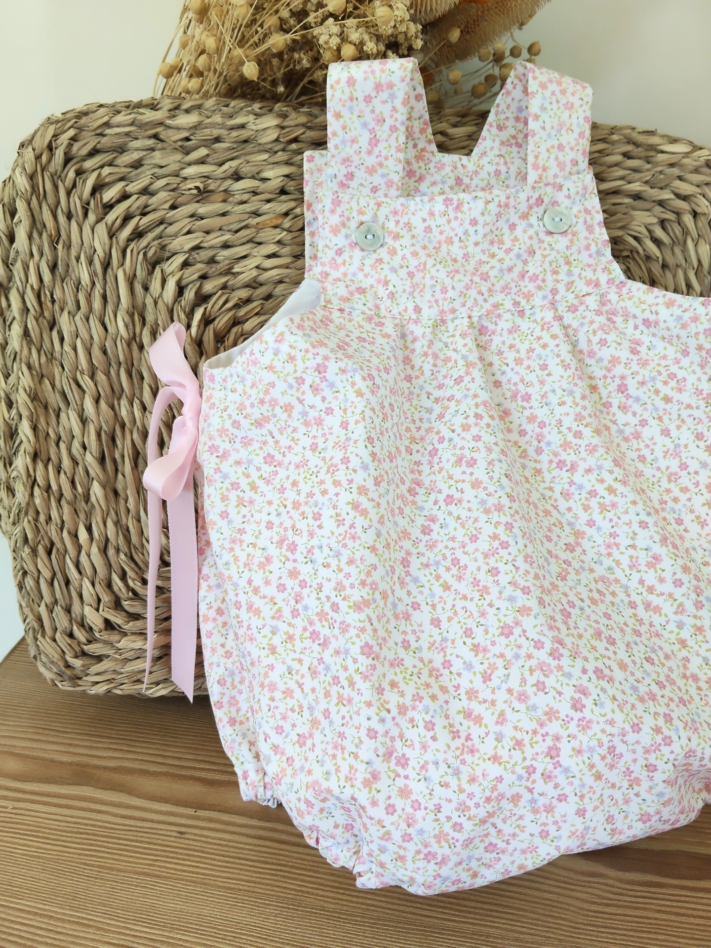 Macacão de bebé com padrão floral rosa e verde e botões frontais