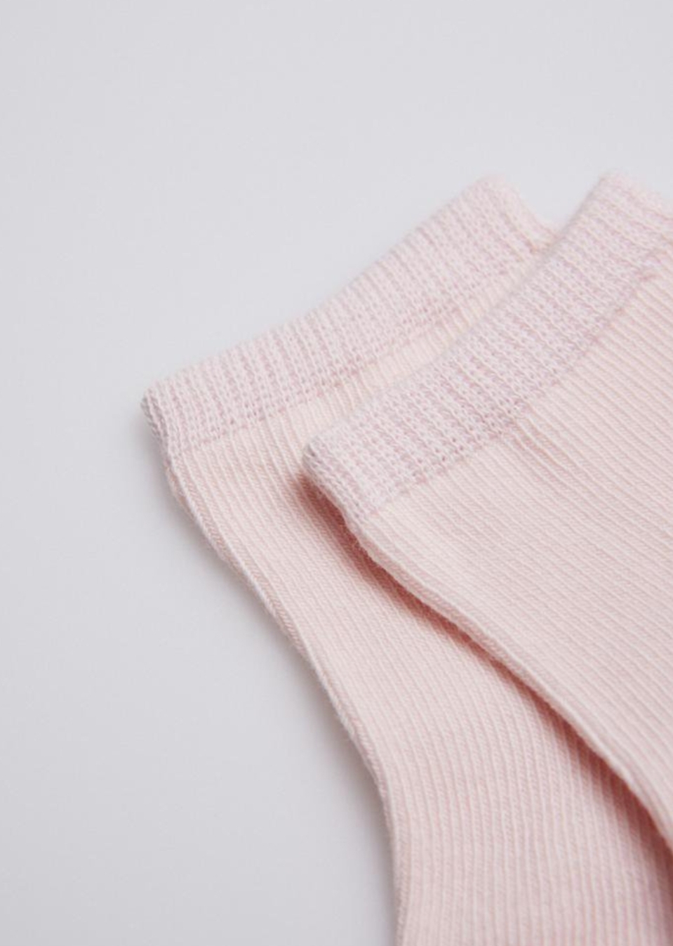• Meias cor-de-rosa claras com punhos elásticos sobre fundo branco