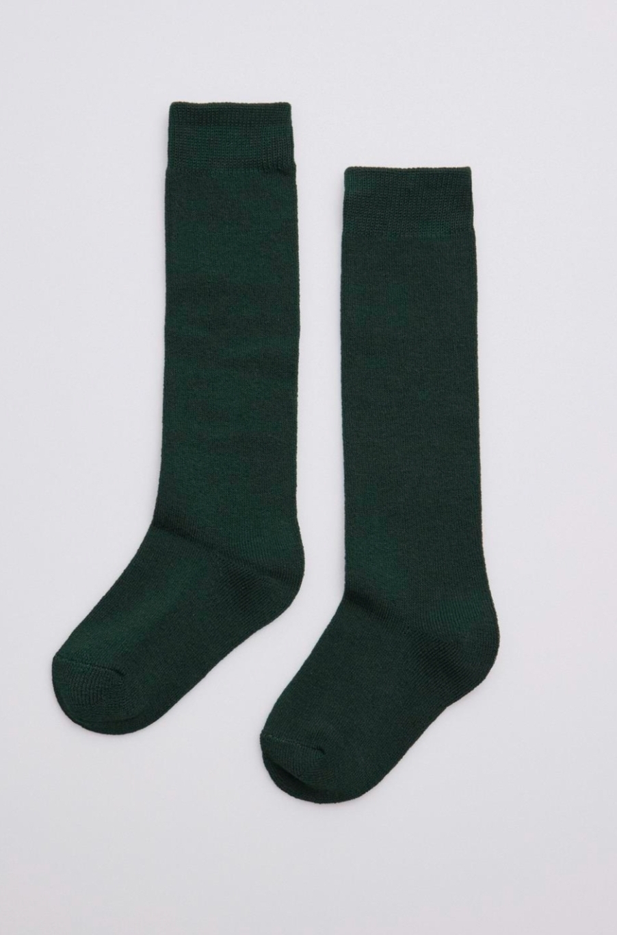 • Par de meias vermelhas com punhos canelados em superfície branca