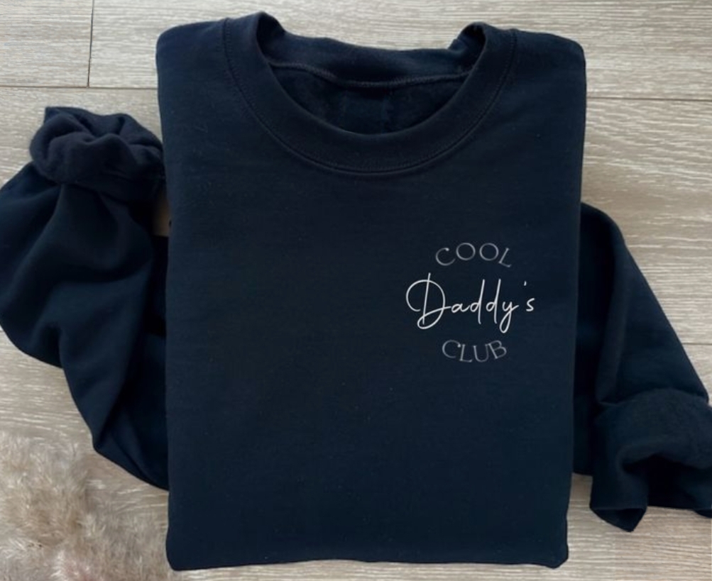 T-shirt preta de manga comprida dobrada com texto branco no peito sobre chão de madeira clara
